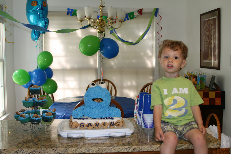 Gavin's party day is here! Here are some pics of his Cookie Monster cake and Gavin and all of the kiddos digging into that blue icing!